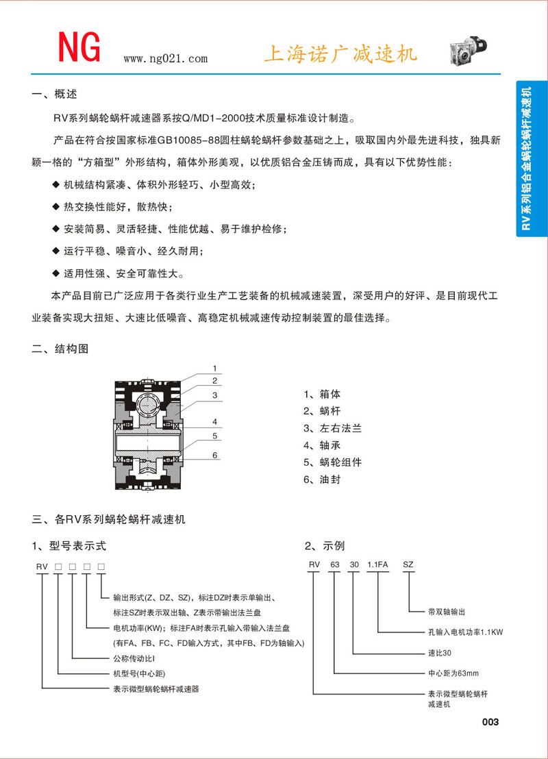 產(chǎn)品參數(shù) >> RV系列鋁合金蝸輪蝸桿減速機-