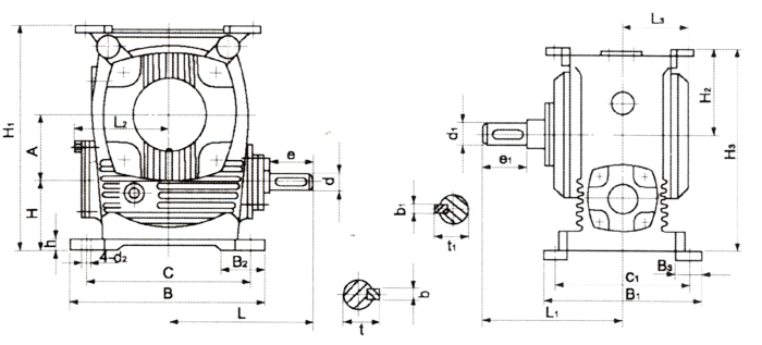 WHC一蝸桿在蝸輪之側(cè)的圓弧齒圓柱蝸桿減速器。