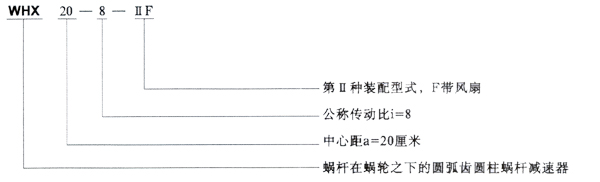 減速器型號中的“w、H、T、X、s、c”分別為“蝸、弧,通、下、上、側(cè)”的漢語拼音字頭,組合為